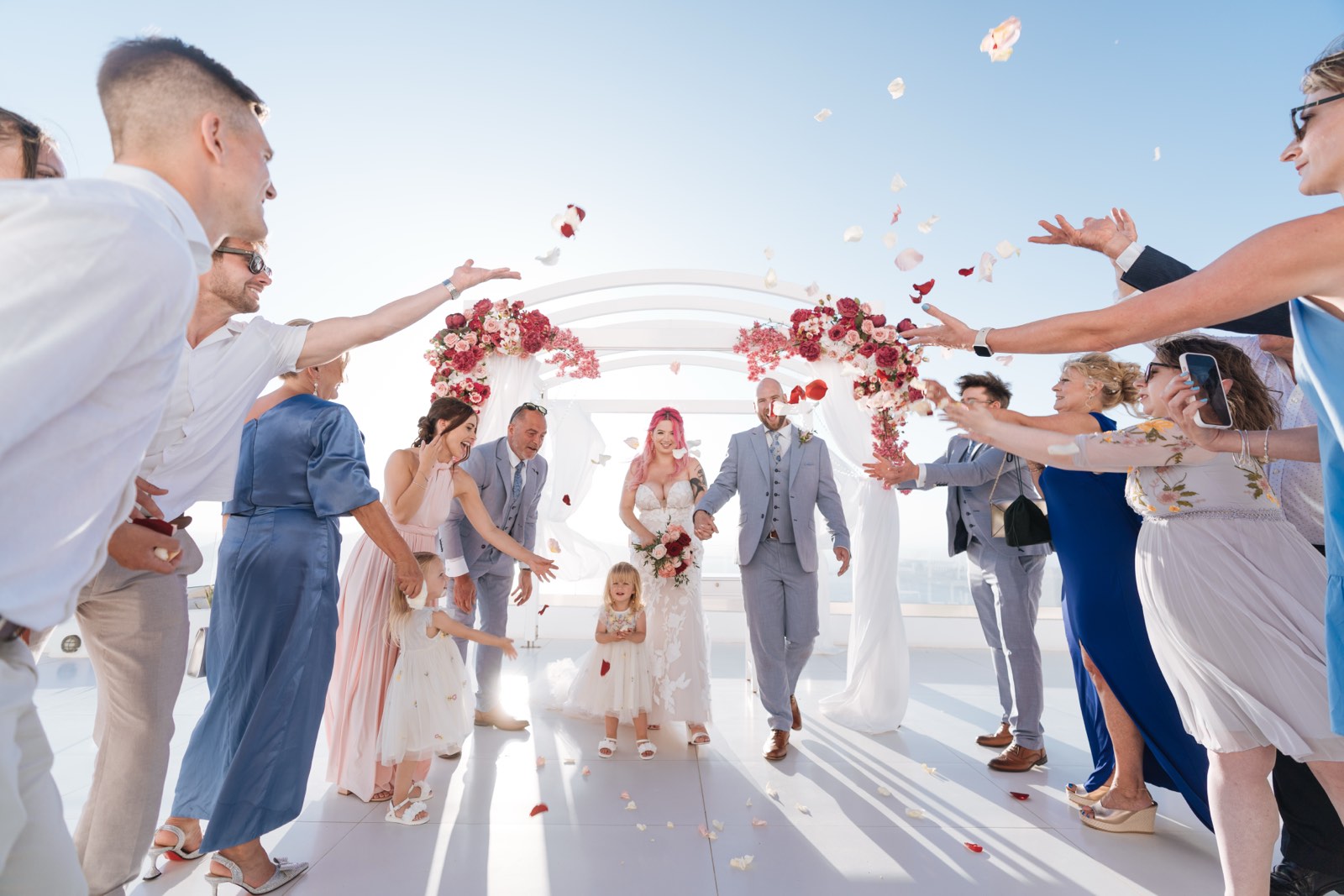 You must be on the island at least 1 working day before (document delivery) and 1 working day after (processing). The next day after the wedding, you'll visit Town Hall with our representative to sign your Marriage Certificate.